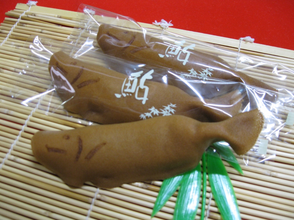 薄く焼いた皮に求肥をつつんで鮎の形に仕上げてあります。柔らかい求肥とカステラの皮のハーモニーがたまりません。